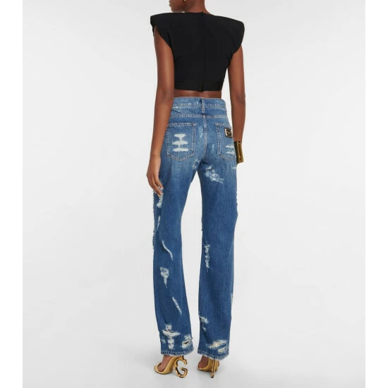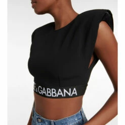 Update your essentials edit with this black crop top from Dolce&Gabbana. Designed with bold capped sleeves, the style is accented with a logo-emblazoned, elasticated hem.
