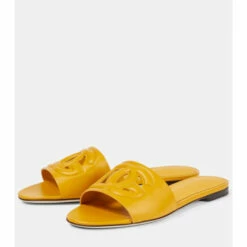 These slides from Dolce & Gabbana are defined by cut-out monograms across the vamps. They’re made from yellow leather for a glamorous feel.