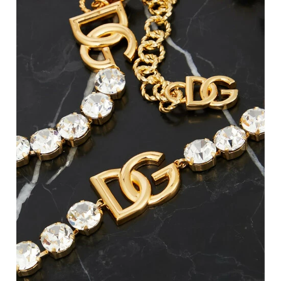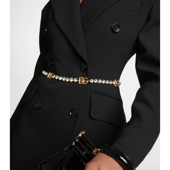 Add a sparkly note to your ensemble with this belt from Dolce&Gabbana. This style features gold-toned logo embellishments, surrounded by rows of shimmering crystal embellishments.