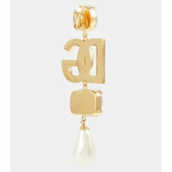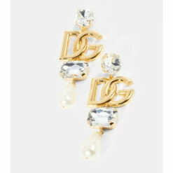 This Dolce&Gabbana design sparkles with a harmonized mix of elements. Made in Italy, this chandelier style has a stacked composition formed by oversized geometric crystals, DG monogram detailing, and faux pearl drops.
