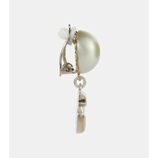 Showcase your devotion to Dolce & Gabbana with these silver-toned monogram earrings. The drop pair are made from brass, and accented with magnified faux pearl studs. Consider them a gift to yourself, or a loved one.