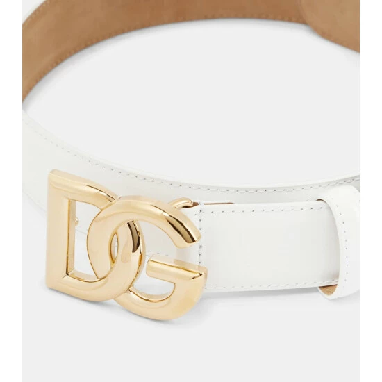 This belt from Dolce&Gabbana has been crafted in Italy from smooth white calf leather. The design features the label’s DG logo in glossy gold-tone metal.