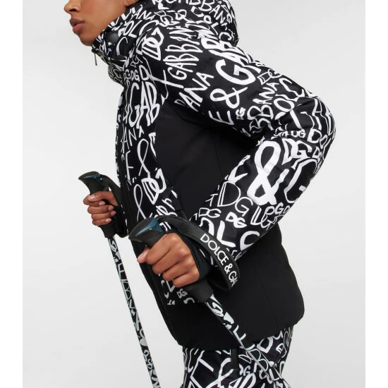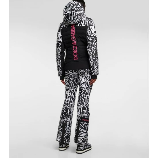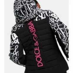This eye-catching ski jacket from Dolce&Gabbana is crafted in Italy from water-resistant technical fabric printed with a graffiti-inspired logo motif. The padded style has a regular fit, is fully lined for comfort, and features quilted panels and pink branding on the back.