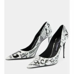 Add a dash of artful elegance to your edit with these logo-print pumps from Dolce & Gabbana. They’re made from doodled calfskin leather with razor-sharp, pointed-toes, accented with signature hardware at the towering stiletto heels.
