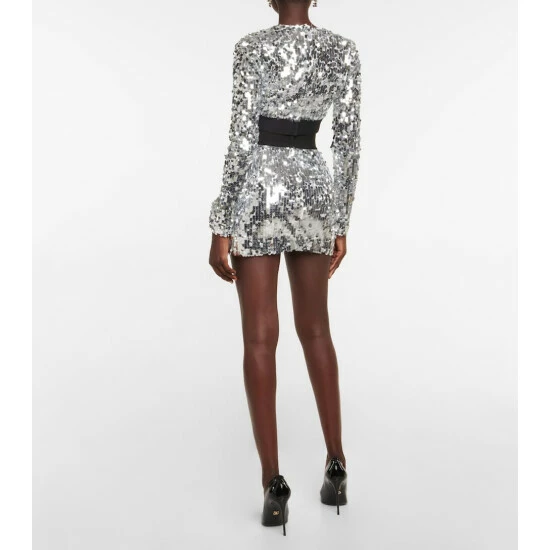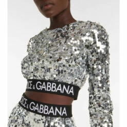 This crop top from Dolce&Gabbana takes sparkle seriously in all-over silver sequins. The crewneck design has a logo-branded elastic hem and silk georgette lining.