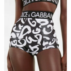 Made from stretchy jersey with a scribble-style logo print, these briefs from Dolce&Gabbana have a high-rise elasticated waistband and scalloped edges.