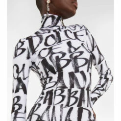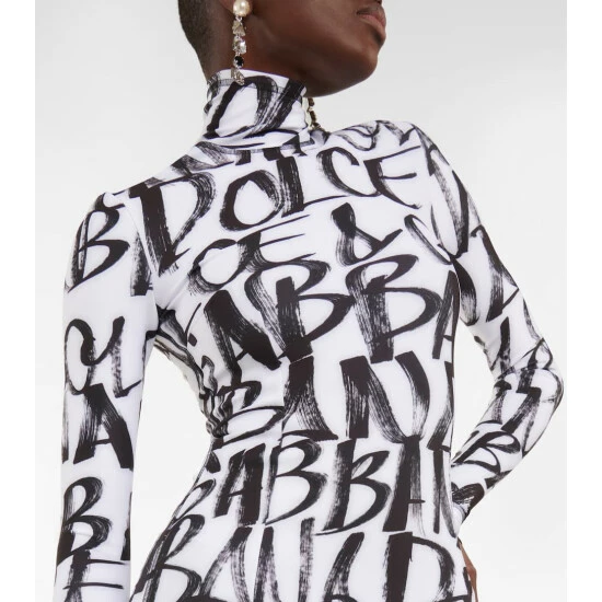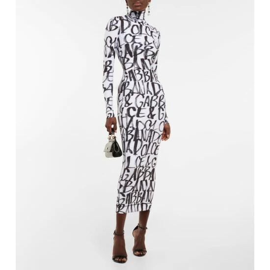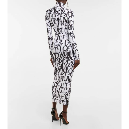 Featuring an all-over scribble-style logo print, this midi dress from Dolce&Gabbana is made from stretchy jersey and has a high neck.