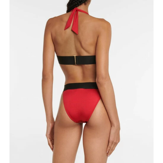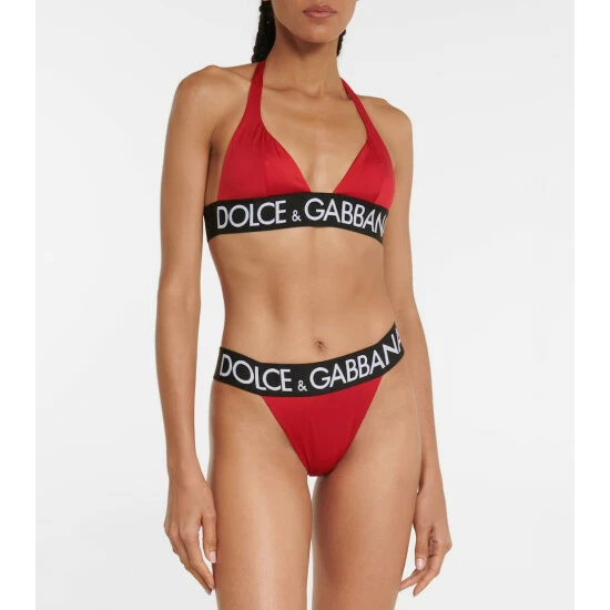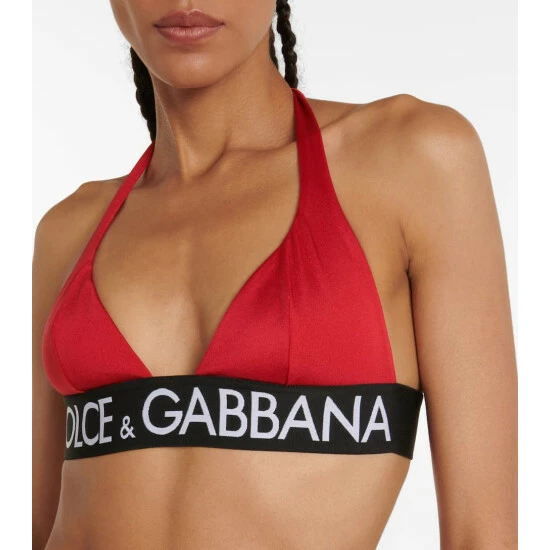 Dolce&Gabbana proves that the most stylish beachwear reinterprets classic silhouettes with this triangle bikini. Designed with adjustable string ties, this piece offers minimal coverage.