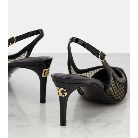 Dolce&Gabbana’s black slingback pumps have pointed toes and buckled straps. This style was made in Italy from calf leather and features mesh trims.