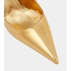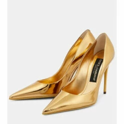 Complete your party outfits with a flash of gold with these pumps from Dolce&Gabbana. Made from shimmery gold-tone leather, the style has a classic stiletto silhouette and a palladium-plated logo on the heel.