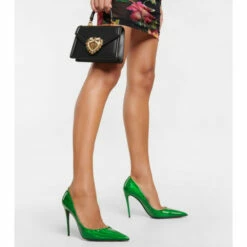 Amp up your evening footwear game with these iridescent pumps from Dolce&Gabbana. The vibrant metallic green style is made from leather and feature pointed toes.