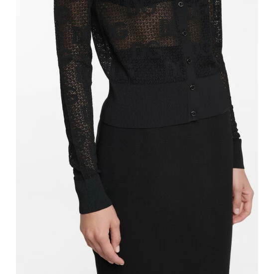 This cardigan from Dolce & Gabbana is an open-knit design with monogram lace stitching. It has a slim fit, fine ribbed trims and tonal mother-of-pearl button fastenings.