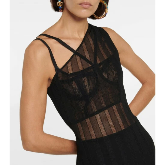 Made from tulle jacquard, this streamlined jumpsuit from Dolce&Gabbana has a one-shoulder silhouette.