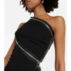 Defined by zip fastenings that snake around the body, this midi dress from Dolce&Gabbana is a one-shoulder design with a streamlined silhouette.