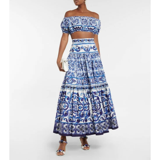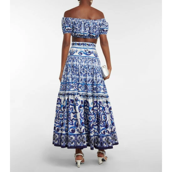 Maiolica-inspired motifs are one of Dolce&Gabbana’s trademark prints. This skirt from the Blu Mediterraneo line is made from cotton and shaped into a pleated midi silhouette.
