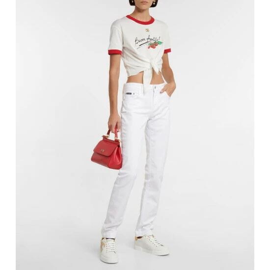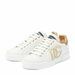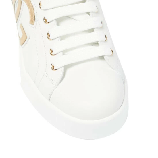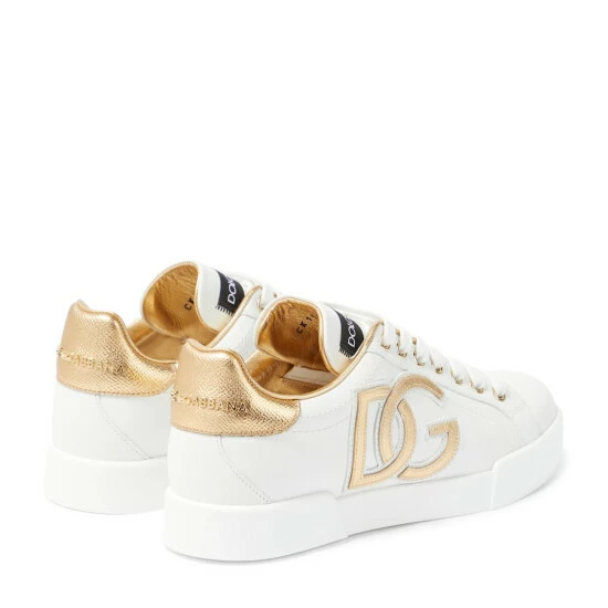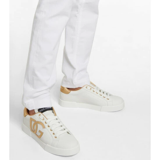 The low-top Portofino sneakers are one of Dolce&Gabbana’s signature footwear styles. Made from white leather, this pair is accented with gold-toned heel tabs and DG lettering on the sides.