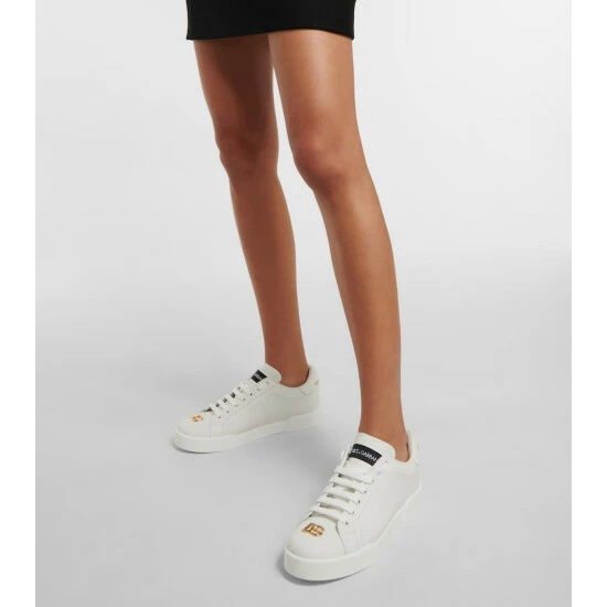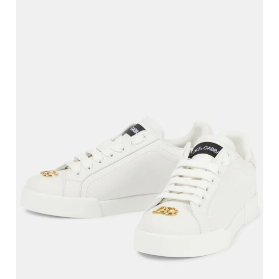 Dolce & Gabbana’s signature Portofino sneakers receive a subtle update for the new season with golden logo-embellished toes and heels. Crafted in Italy from smooth leather, they have a flat rubber sole for ease and comfort.