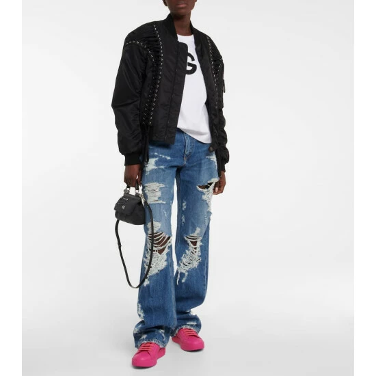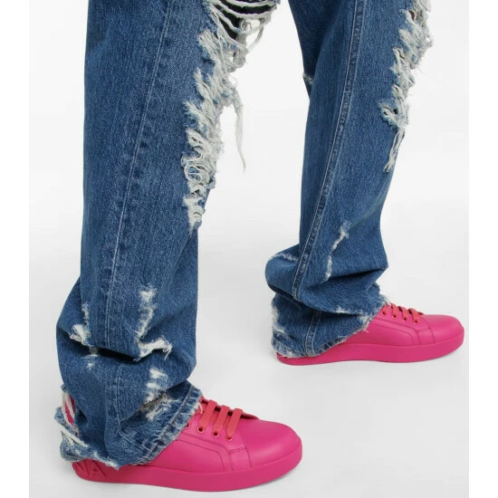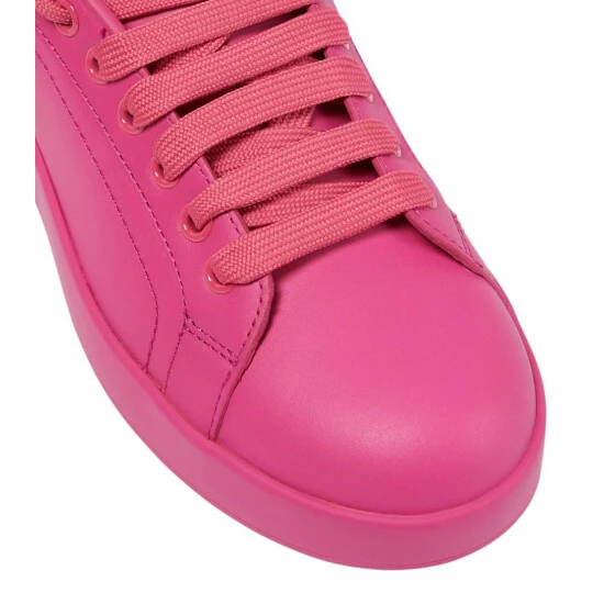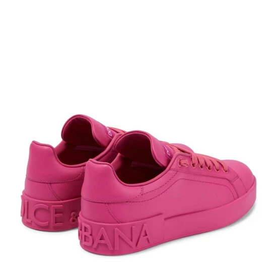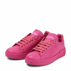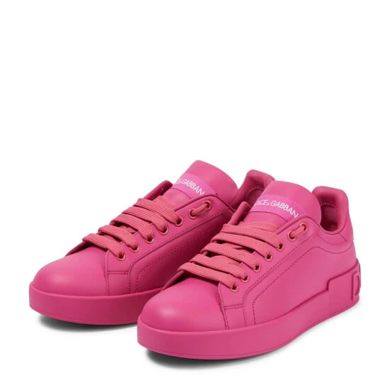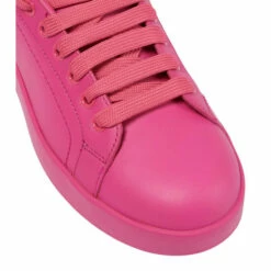 Combine sporty and stylish with the Portofino sneakers from Dolce&Gabanna. This style is made from leather in a stark electric pink hue and features the brand’s logo at the heel.