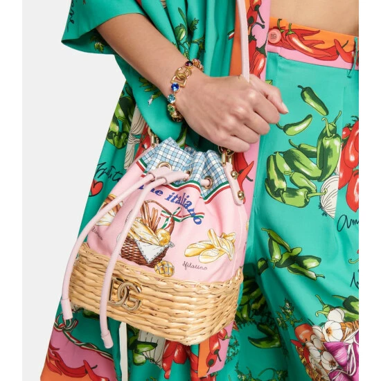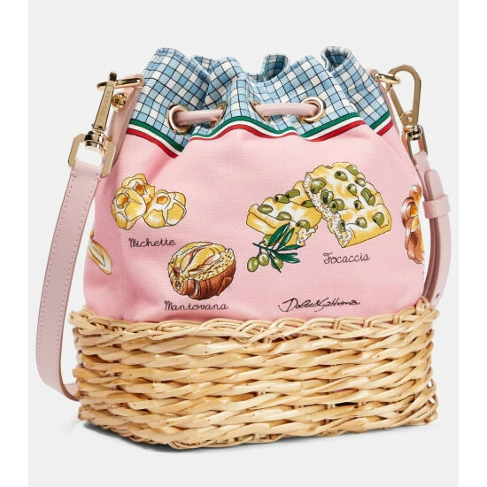 This Dolce&Gabbana bucket bag is the perfect style to take with you to a summer picnic. It’s made from wicker and canvas that is printed with Italian delicacies, and is complete with a leather shoulder strap and a logo embellishment.