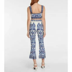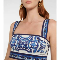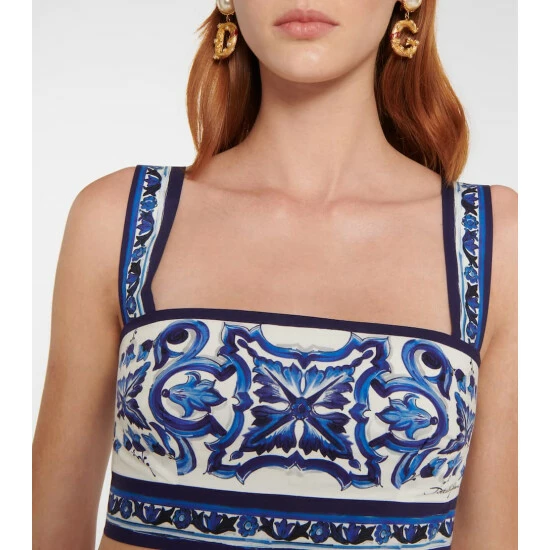 Feel whisked away to faraway landscapes in this Dolce&Gabbana crop top printed with the brand’s Blu Mediterraneo motif. A stylish separate, it’s cut from cotton to a simple silhouette with wide straps.