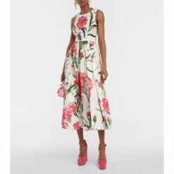 This sleeveless midi dress from Dolce&Gabbana features an all-over floral print in refreshing springtime colors. Made in Italy from pure cotton, this design comes with side slit pockets.