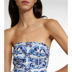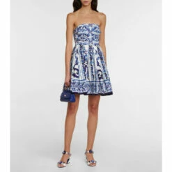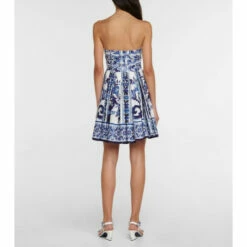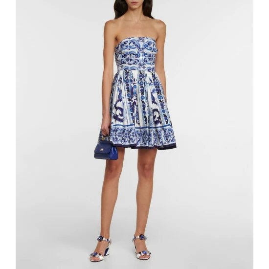 This bandeau fit-and-flare minidress fromDolce&Gabbana is printed with a foulard pattern from the house’s archives. It’s made from cotton in flattering folds across the bodice and box-pleats along the skirt.