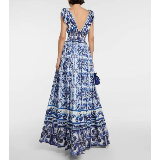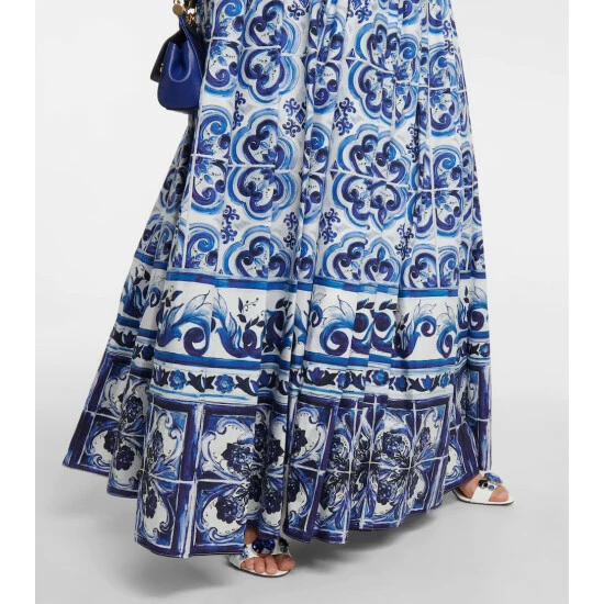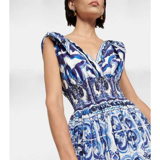 Sicilian elegance comes easy with this maxi dress from Dolce&Gabbana. Cut from airy cotton poplin, it’s printed with artful motifs and features self-tie shoulder straps and a flatteringly shirred empire waist.