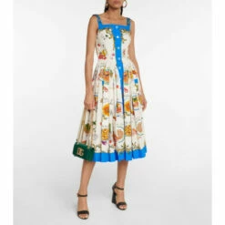 Made from cotton poplin, this midi dress from Dolce & Gabbana features a buttoned front and a print that depicts highlights of Italian cuisine.