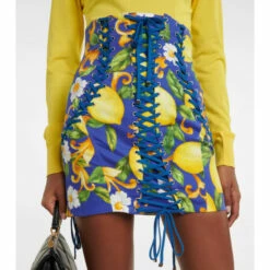 Dolce&Gabbana’s The Exclusive Lemon Collection revolves around a unique lemon print. A label-signature silhouette that’s reminiscent of retro lingerie styles, this miniskirt is made from cotton-blend drill and accented with lacing cord.