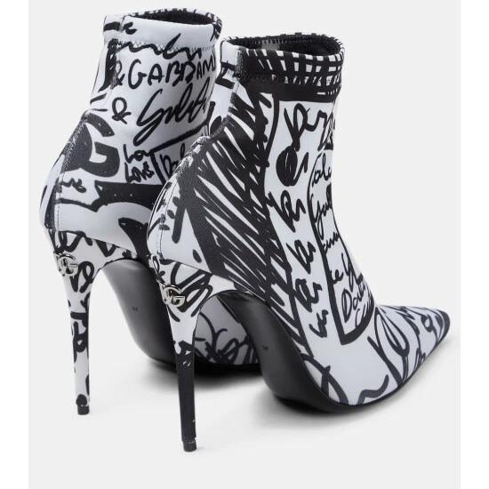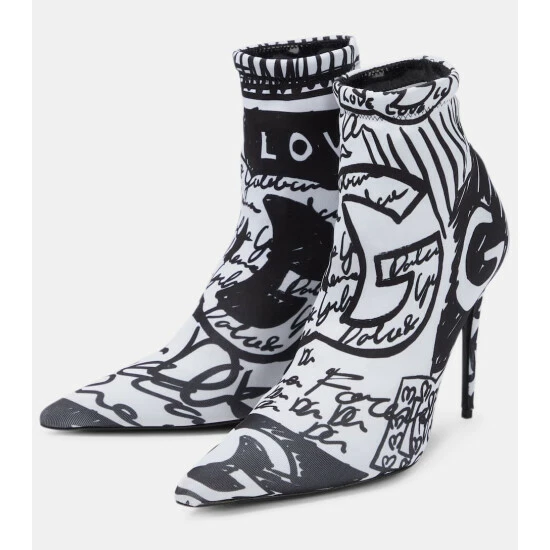 Dolce&Gabbana devotees will love strutting in these ankle boots, featuring a logo lettering motif with street-style appeal. The design has a razor-sharp toe and classic stiletto heels.