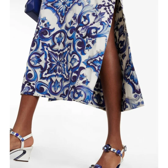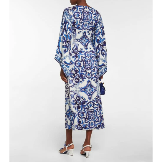 Featuring one of the label’s signature tile-inspired prints, this midi dress from Dolce&Gabbana is made from a silk-blend and has draped sleeves.