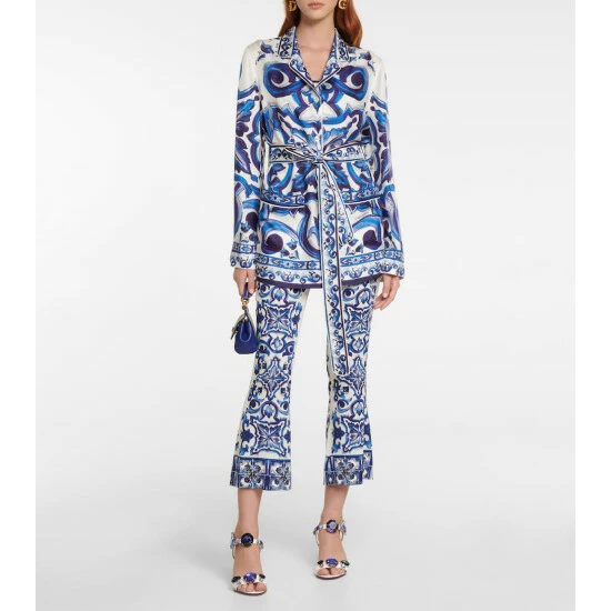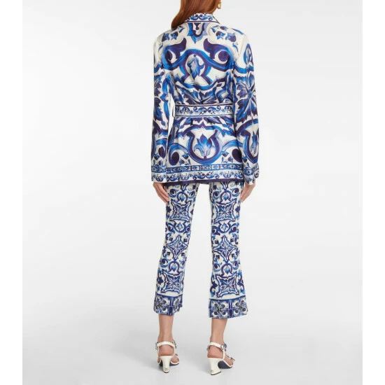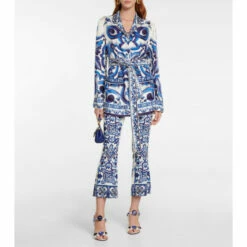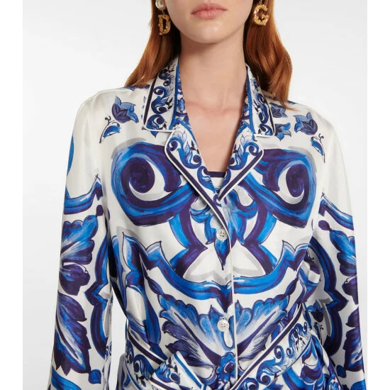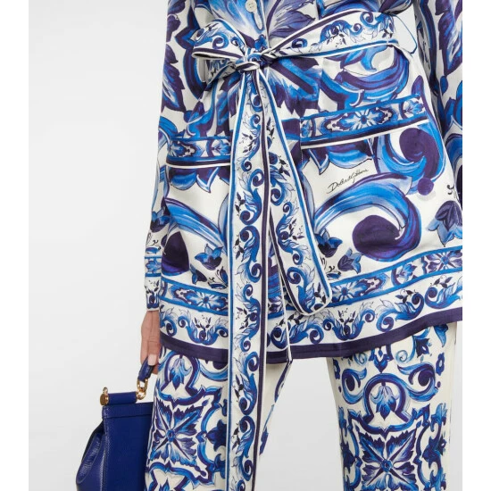 Luxurious Italian styling has never been so easy than in this Dolce&Gabbana shirt printed with the brand’s Blu Mediterraneo motif. Cut from pure silk, it’s designed with a self-tie belt to accentuate the waist.