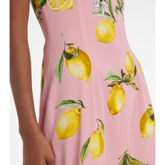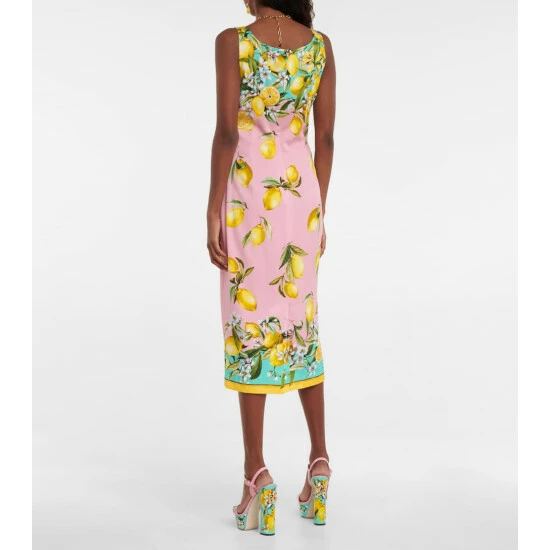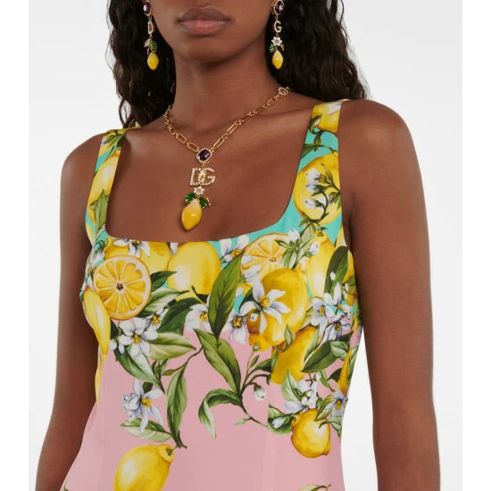 Dolce&Gabbana’s exclusive collection for Mytheresa blends Sicilian-tinged designs with high-summer elegance. Made from a stretchy silk-blend, this close-fitting midi dress is shaped with a squared neckline and patterned with zesty lemons.