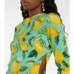 Celebrate summer the Sicilian way with this exclusively designed dress from Dolce&Gabbana. Crafted from a blend of silk, this long-sleeved style is decorated with a vibrant lemon print.