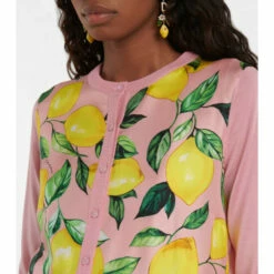 Dolce&Gabbana’s The Exclusive Lemon Collection revolves around a unique lemon print. This silk cardigan has a printed twill front panel and ribbed trims.