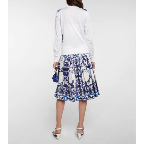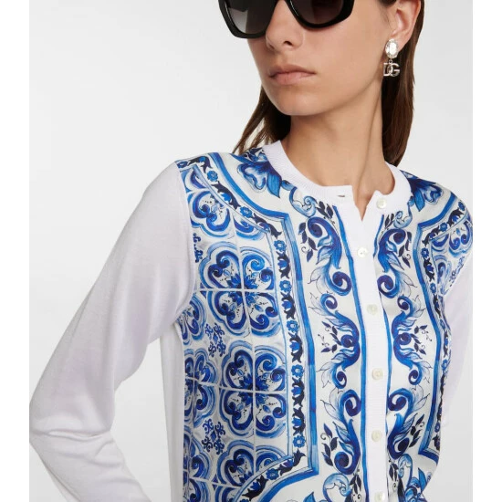 This Dolce&Gabbana cardigan features a twill panel with an artful, paisley-inspired motif and is framed with knit sleeves. It’s cut from pure, breathable silk yarns and is finished with finely ribbed trims.