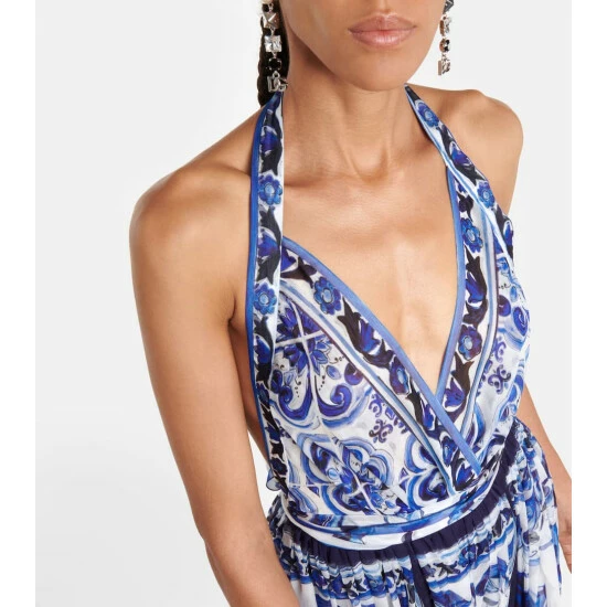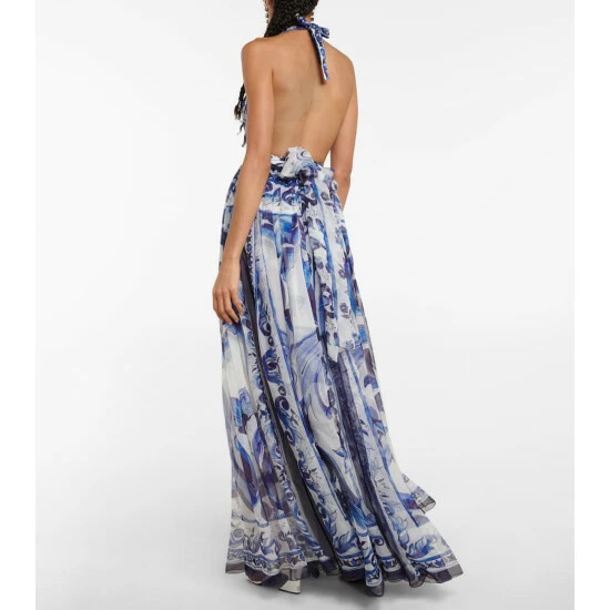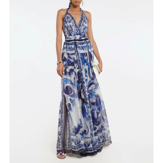 Add a touch of ethereal elegance to your summer wardrobe with this maxi dress from Dolce&Gabbana. Cut from airy silk chiffon, this halterneck style features the brand’s signature tile-inspired print and a self-tie belt.