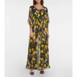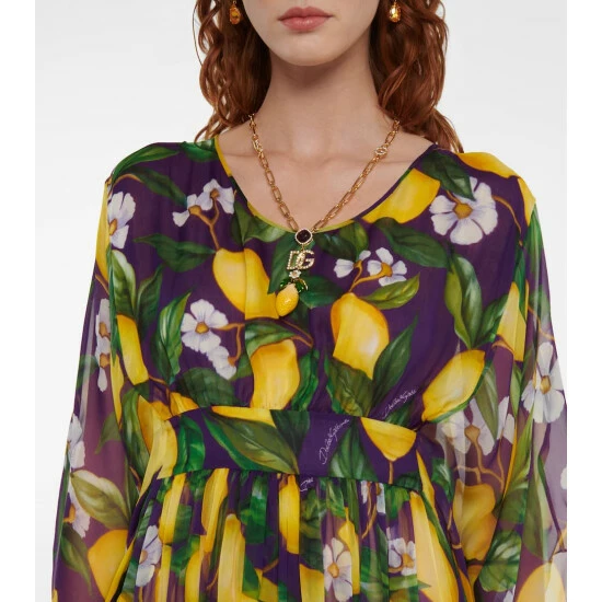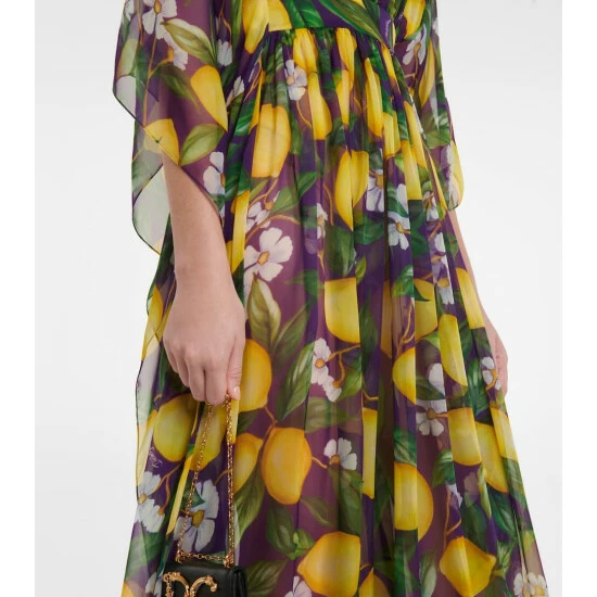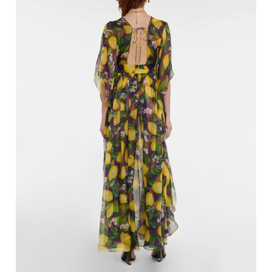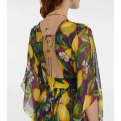 The Exclusive Lemon Collection from Dolce&Gabbana x Mytheresa merges poolside style with Italian glamour. This kaftan-inspired maxi dress is made from silk chiffon with an open back, cape sleeves, and a diaphanous skirt.