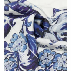 This square scarf from Dolce & Gabbana makes an artful statement. It is crafted from silk and illustrated with blue and white florals.