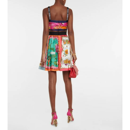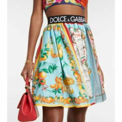 Look to Dolce&Gabanna’s Capri collection for playful pieces inspired by ’60s Italian culinary culture, such as this miniskirt. Made from silk twill, it has a high-rise, logo-emblazoned waistband and features a fun paneled print.