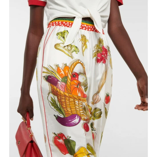 Dress for al-fresco dining with these printed palazzo pants from Dolce&Gabbana. They’re made made from lustrous silk twill, printed with hand-drawn groceries, and finished with an elasticated high-rise waist and