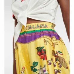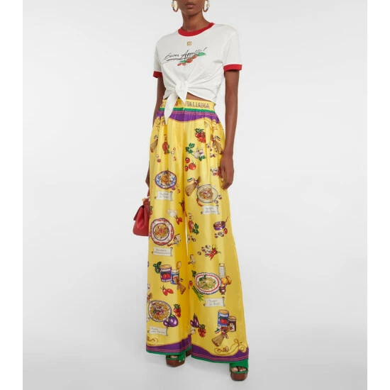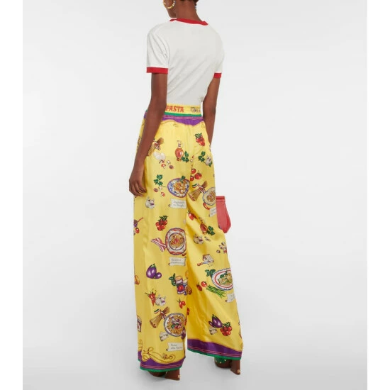 Dolce&Gabbana offers a taste of Italy with these pasta-printed pants. Made from silk twill, the high-rise design has an elasticated waistband and flared legs.