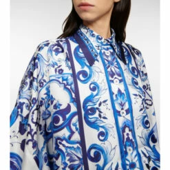 This Dolce&Gabbana shirt is made from silk twill with a cape-like silhouette. An oversized design with a shirt collar, it’s printed with a pretty blue tile pattern that’s inspired by Italian maiolica pottery.