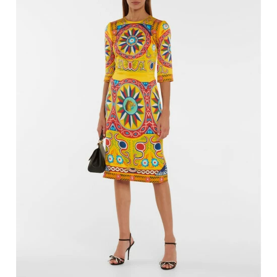 Invest in Dolce & Gabbana’s romantic summer aesthetic with this yellow midi dress. Made in Italy from stretch-silk crêpe, it has a relaxed silhouette with ruffled trims and a tiered hem.