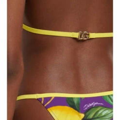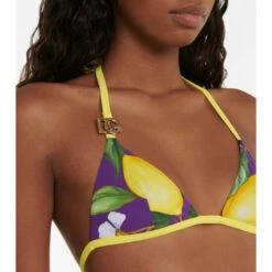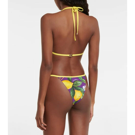 Dolce&Gabbana updates the classic triangle bikini with an exclusive lemon print for their latest collection for Mytheresa. This set is accented with DG metal logo detailing and has thin side laces for minimal coverage.