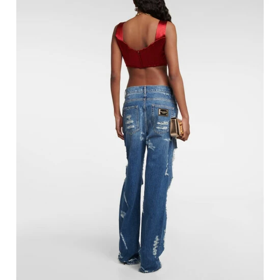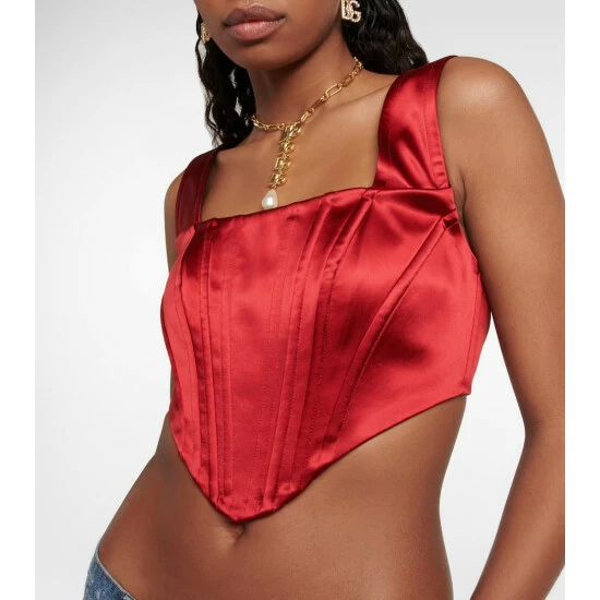 Romance is in the air with this lustrous satin bustier top from Dolce&Gabbana. The corsetry-inspired style has a boned bodice with reinforced stitching, a squared neckline, and a V-shaped hemline.