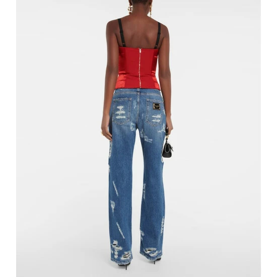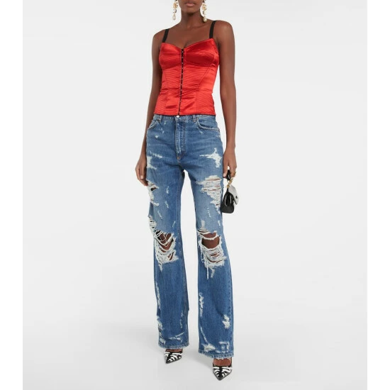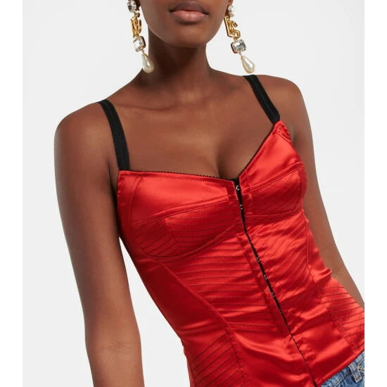 Dial up the allure in this striking corset top from Dolce&Gabbana. Crafted from siren-red satin, the style has a sweetheart neckline and is accented with adjustable shoulder straps, topstitching, and hook-and-eye closures down the front.