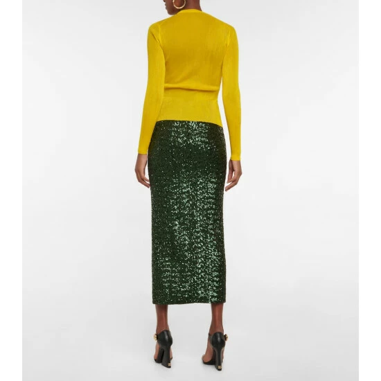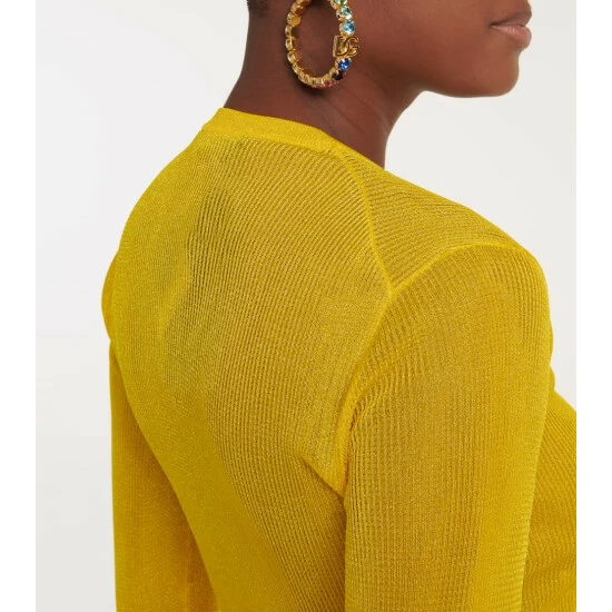 Dolce&Gabbana takes knitwear into warmer climes with this semi-sheer sweater. The lightweight ribbed-knit style hugs the figure and arrives in vibrant yellow.