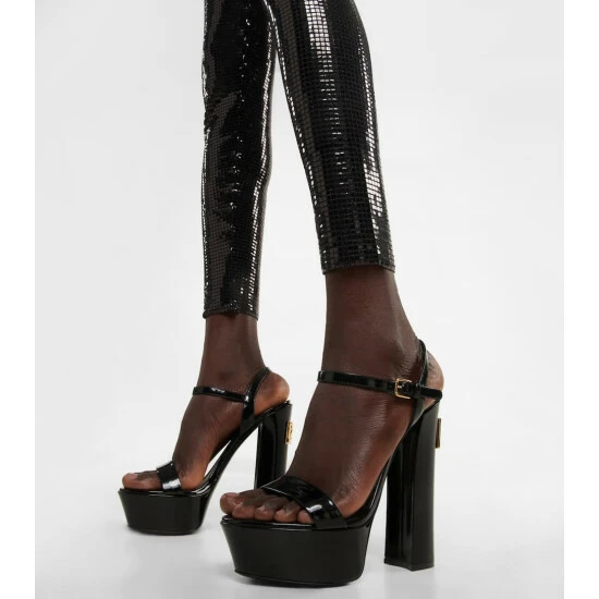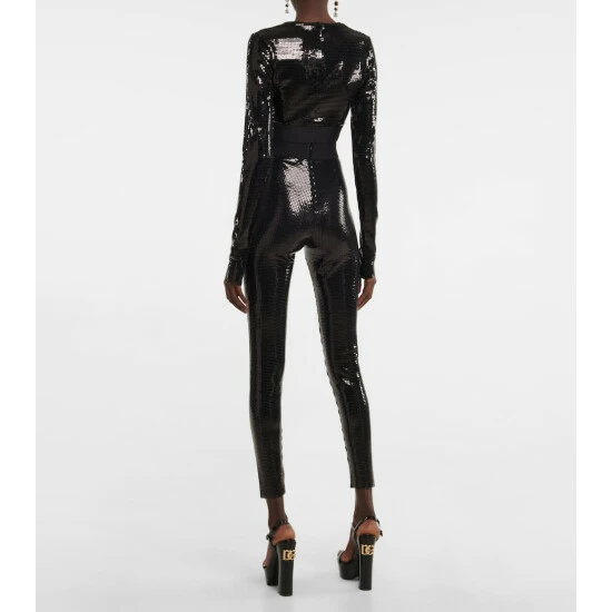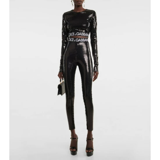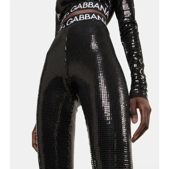 Take Dolce&Gabbana on your next night out with these reflective tile-effect sequined leggings. They have a high-rise waist with a logo-adorned elasticated trim. Style with the matching crop top for the full effect.
