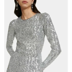 This shimmering dress from Dolce&Gabbana is encrusted with silver sequins. It is shaped to a simple silhouette with stretch, and falls to a mid-length hemline. Its minimalist shapes makes its shining embellishment truly stand out.